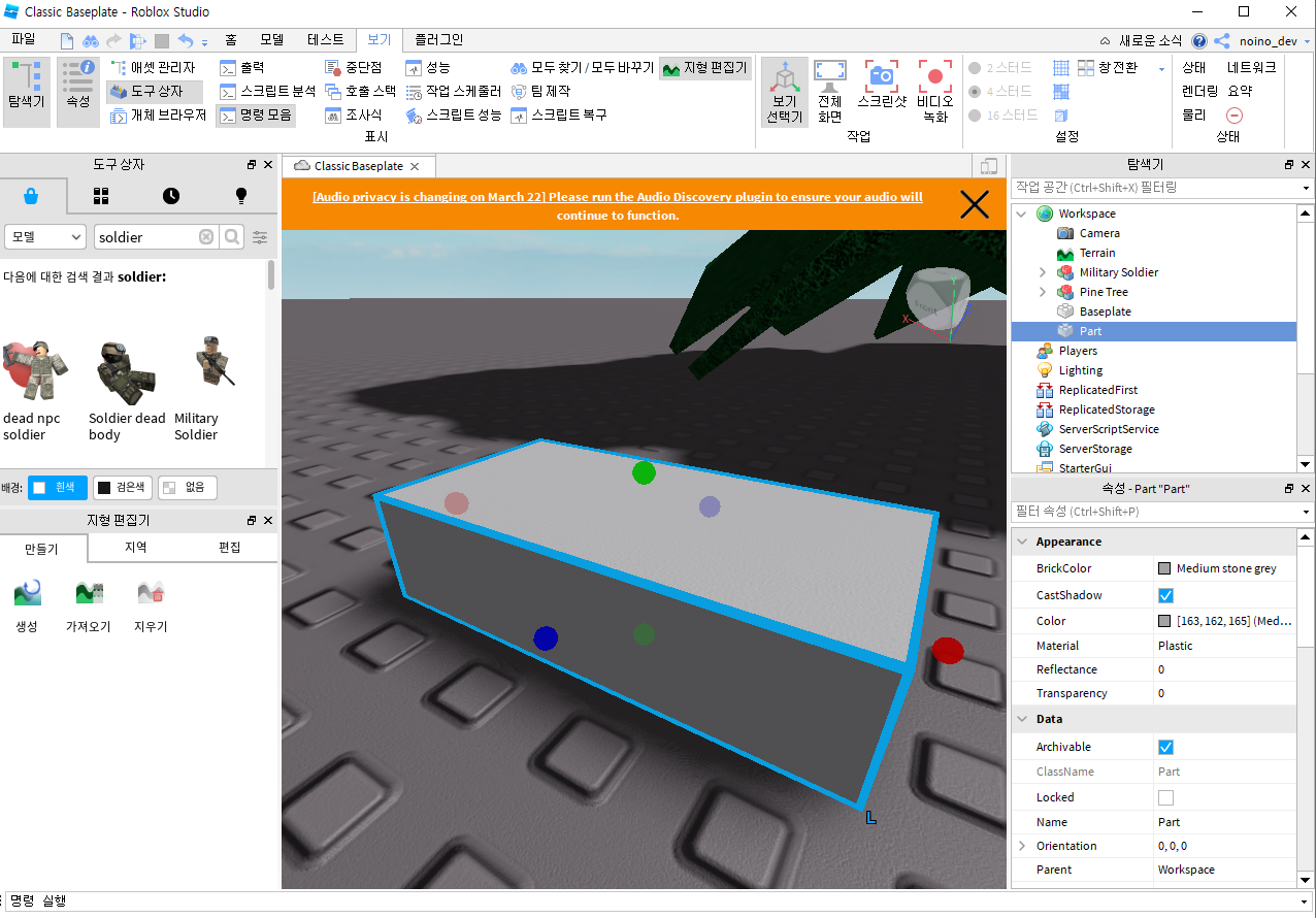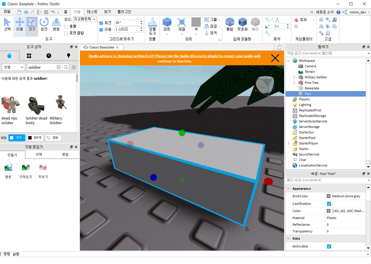 로블록스에선 이런 기초적인 오브젝트를 '파트'라고 한다.